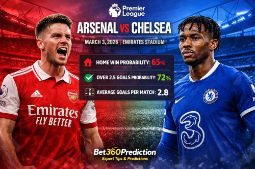 For the March 3, 2026 clash, Bet360Prediction forecasts a Home Win for Arsenal with a 65% probability.